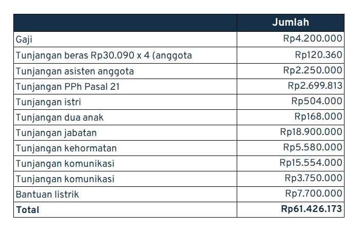 Wakil Ketua DPR RI: sekitar Rp 2,77 juta per bulan
